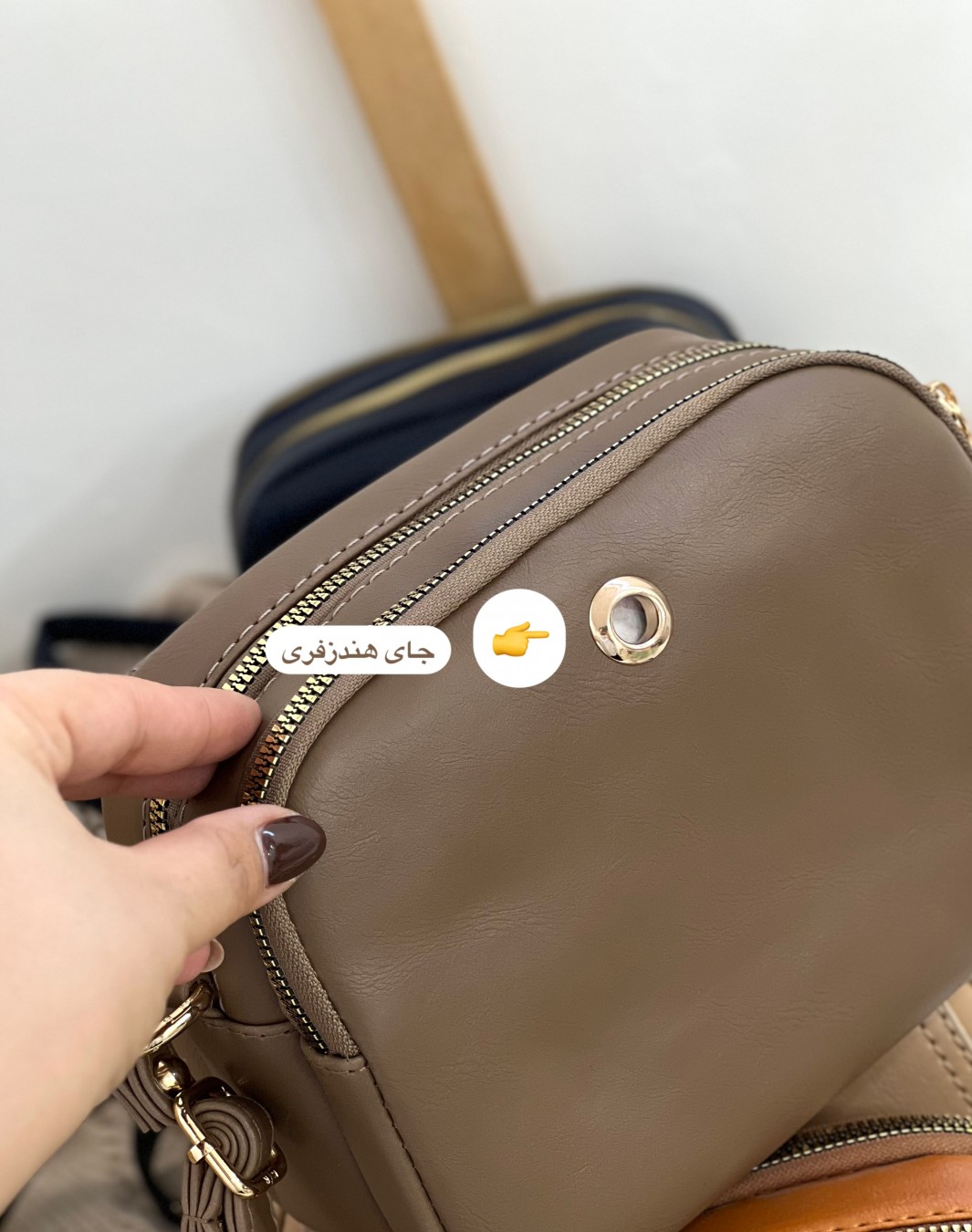 تعداد زیپ ها: دارای سه زیپ می باشد و پشت کیف جای هندزفری دارد.