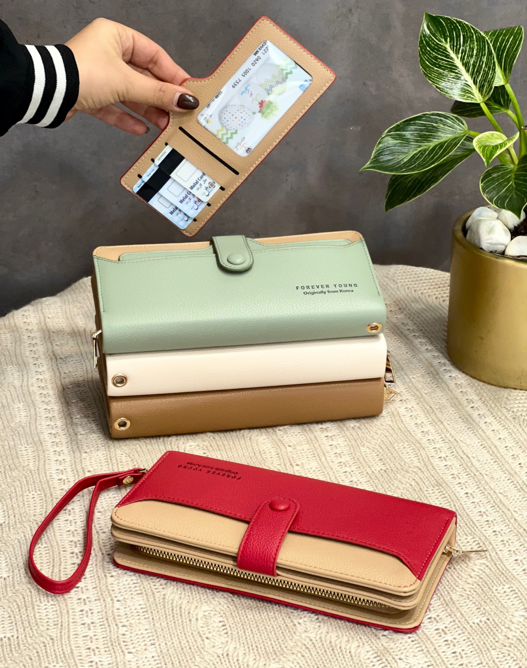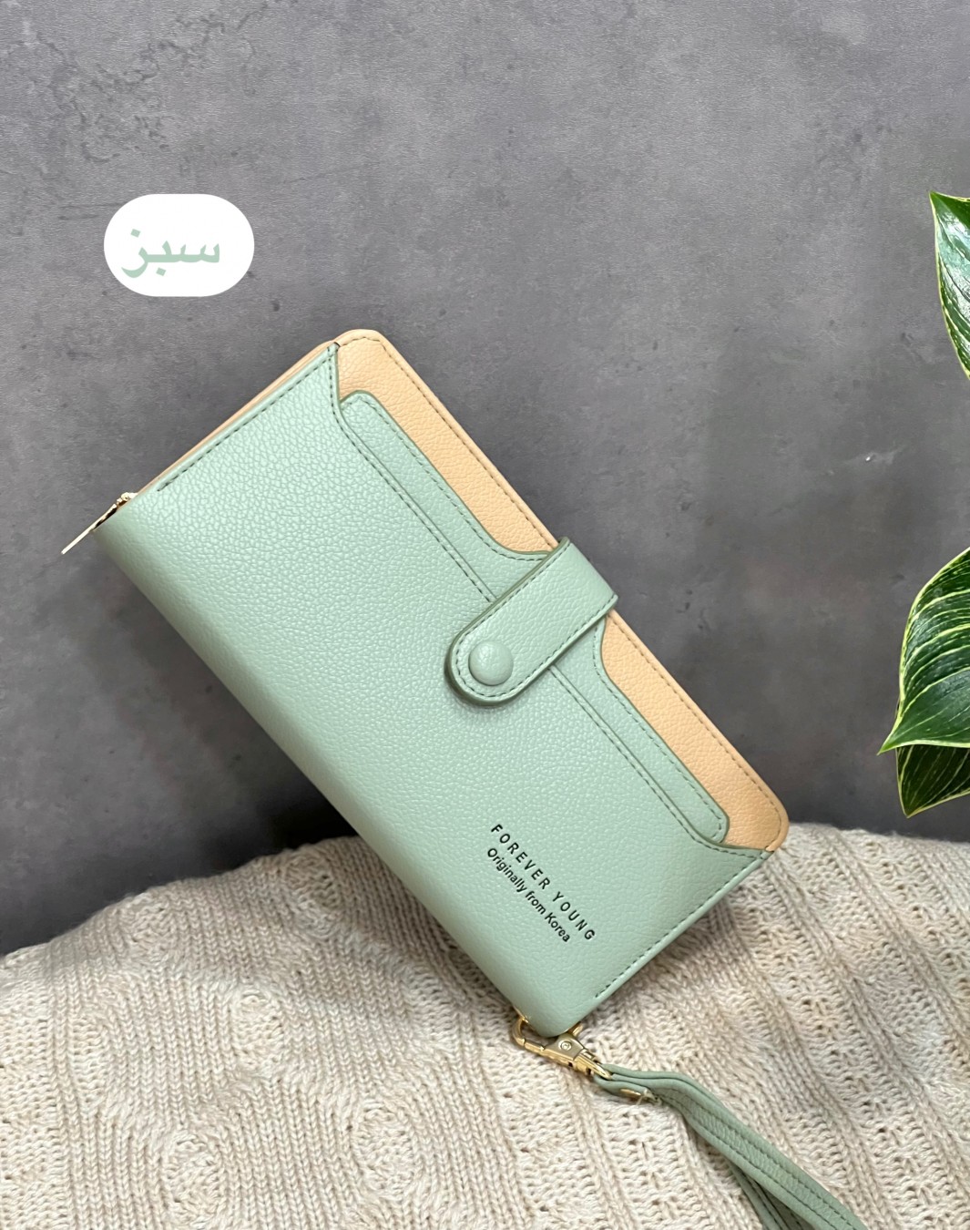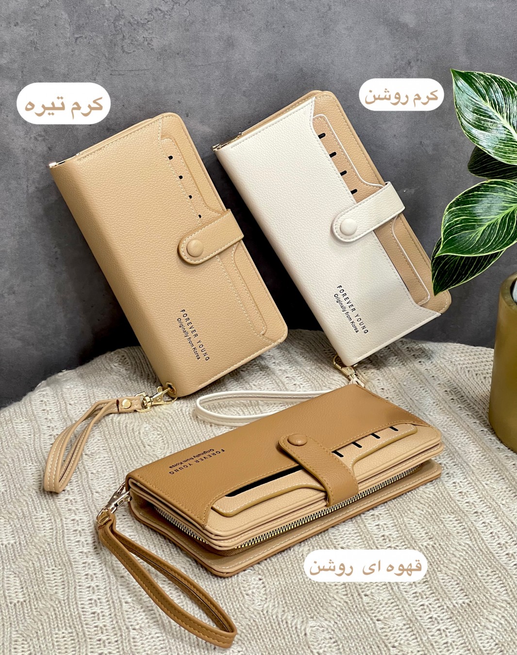 تعداد خانه و زیپ: دارای دو قسمت که با زیپ و مگنت باز میشود و جای 13 عدد کارت بانکی،اسکناس و عکس می باشد.