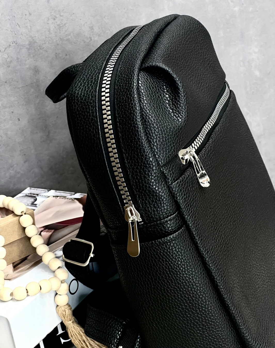 تعداد زیپ ها و خانه ها: دارای یک زیپ اصلی,یک زیپ در جلو و یک زیپ در پشت کوله و دو عدد جیب در کناره های کیف می باشد.