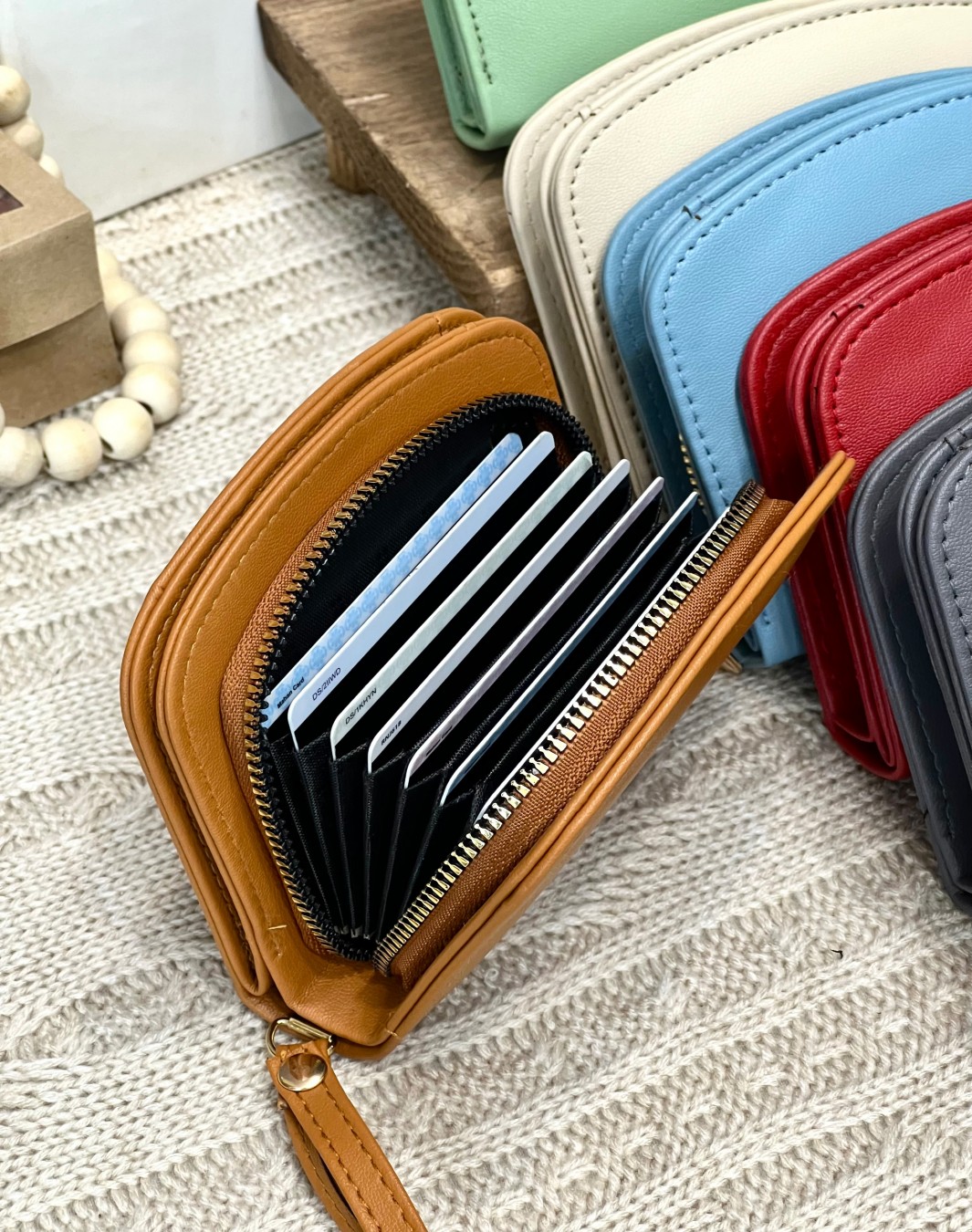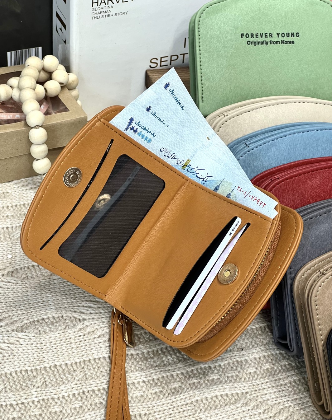 دارای ۸ عدد جای کارت در قسمت زیپ و جای اسکناس و در قسمت جلوی کیف جای عکس و دو عدد کارت بانکی می باشد.