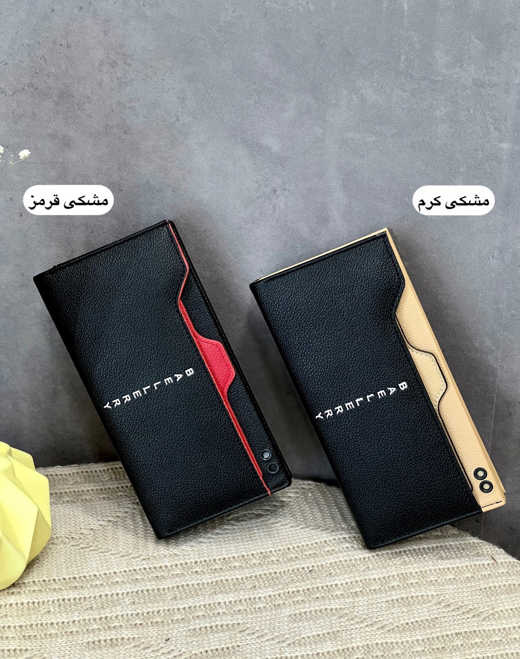 تعداد خانه و زیپ: دارای دو قسمت که با زیپ و مگنت باز میشود و جای 8 عدد کارت بانکی،اسکناس و عکس می باشد.